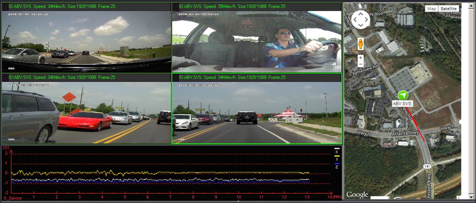 Quad view with G sensor & satellite mapping screenshot. The above is a low resolution image to speed up page loading.