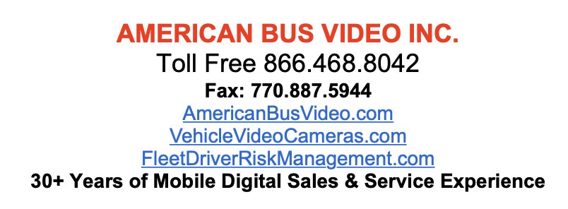 - Periodic special offers for additional American Bus video Inc. products and services.